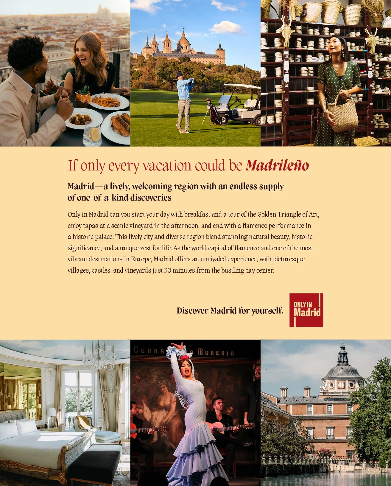 The campaign centered on a clear message: Madrid isn’t just for leisure—it’s a city where business trips can actually feel inspired. We landed on the tagline “Translate your business into something Madrileño”, and built a series of playful, visually rich executions around it.
