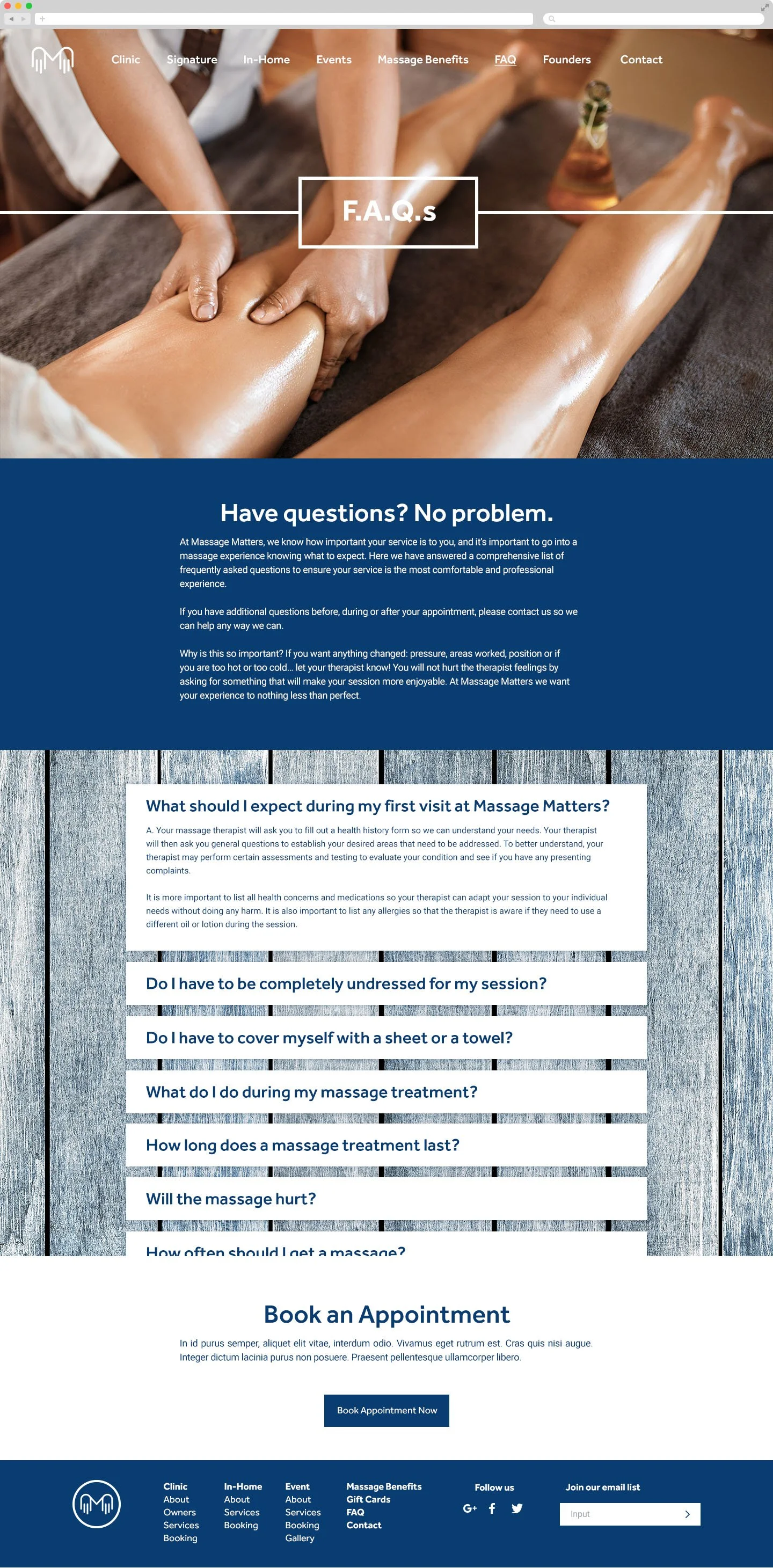 The new website was one of the biggest pieces of the project, consisting of over a dozen pages in total, and incorporating a third-party booking and scheduling widget.