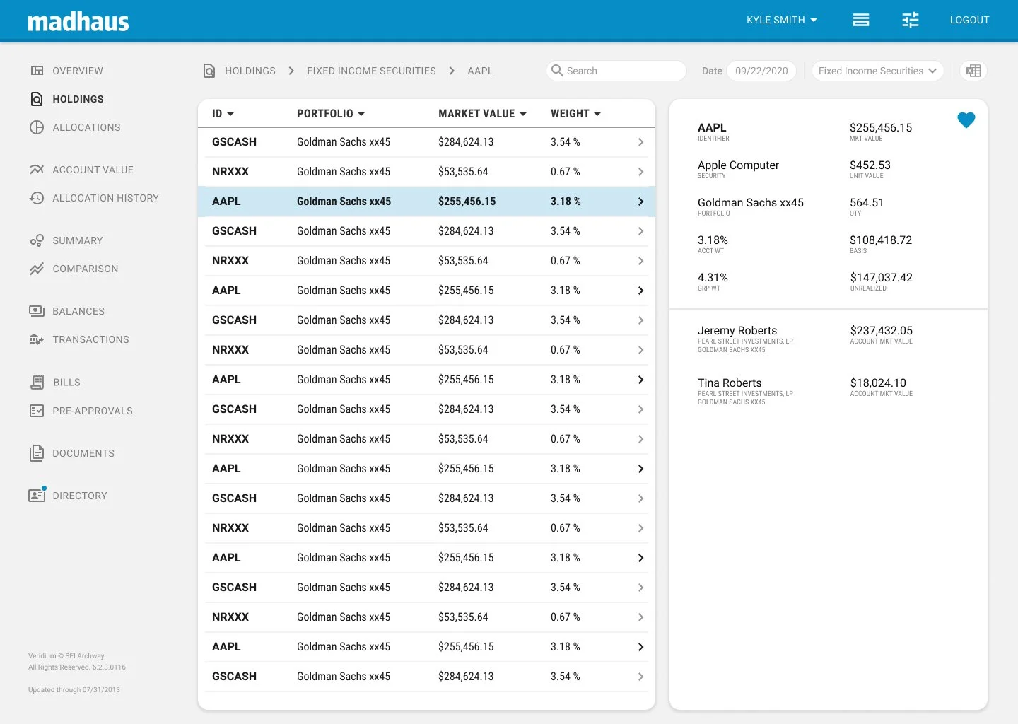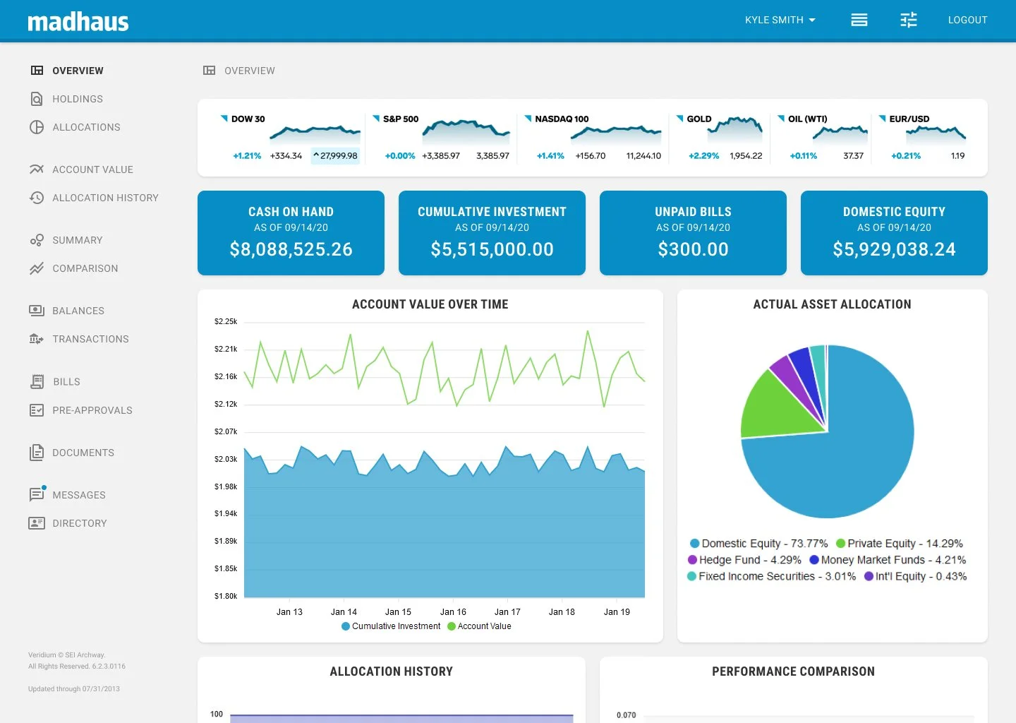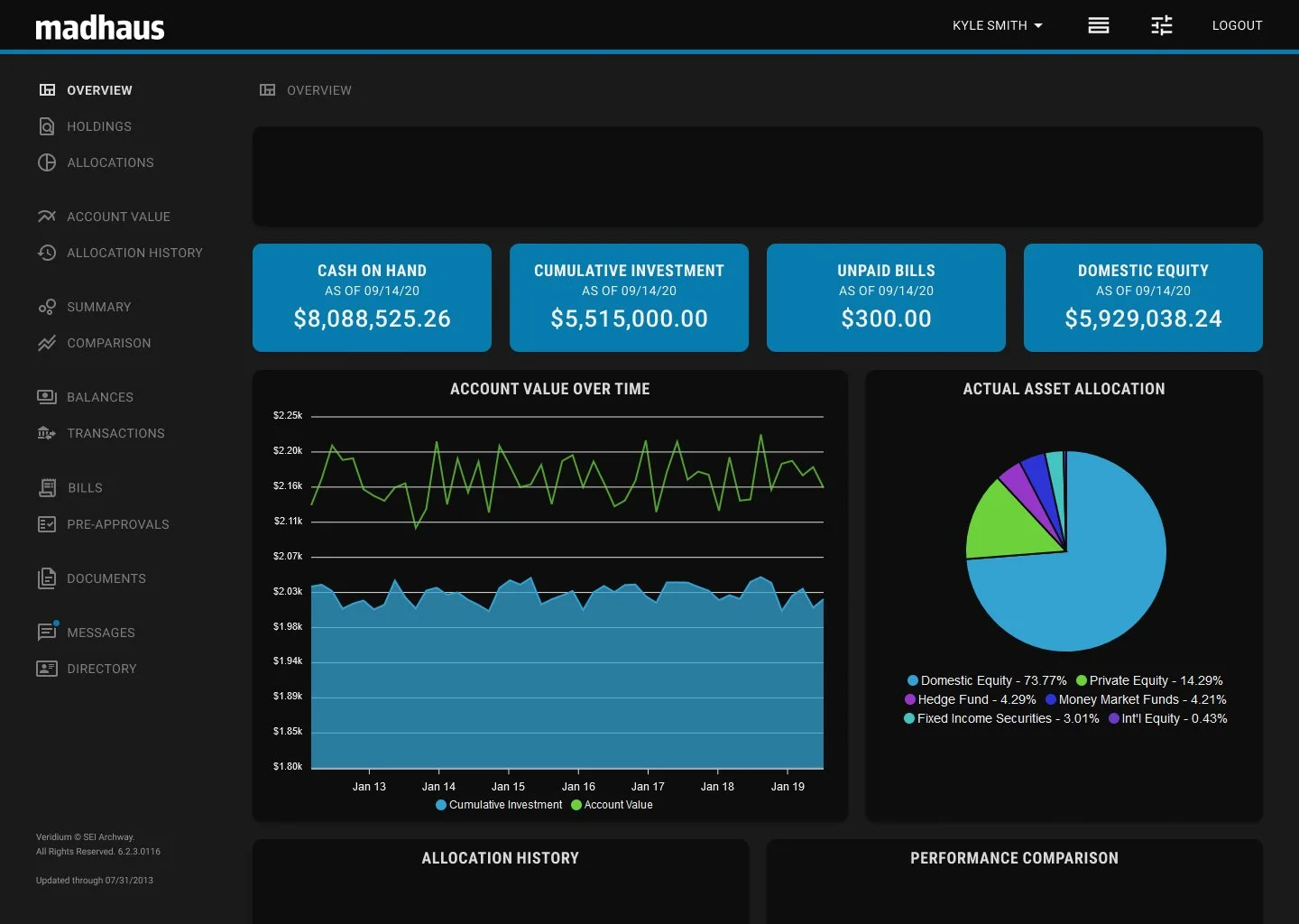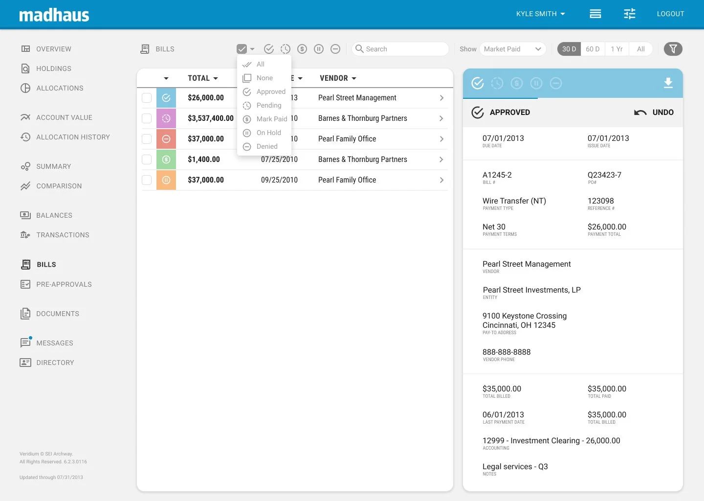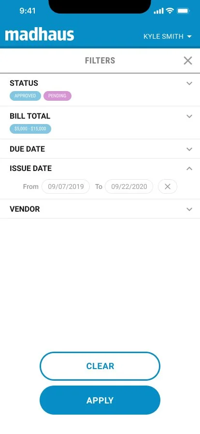 We had to account for a variety of current features, including in-app messaging, an expense/bills approvals process, document organization and uploading, and various charts and viewing tables.